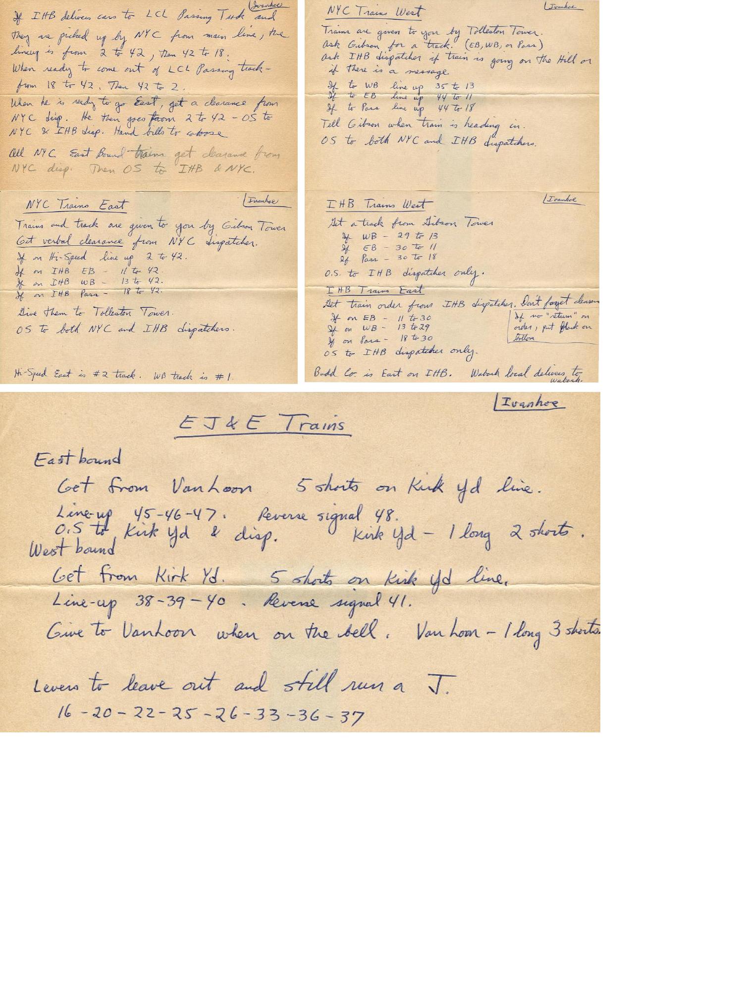 Eastbounds are on top, westbounds on bottom, NYC(MC) and IHB on the left, and EJ&E on the right.