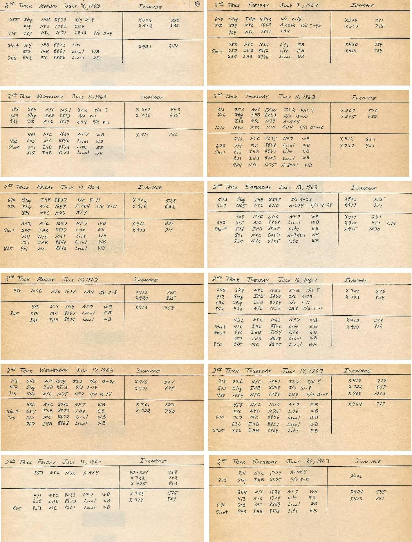 A typical second trick had an average of four J trains and seven NYC/MC/IHB trains.